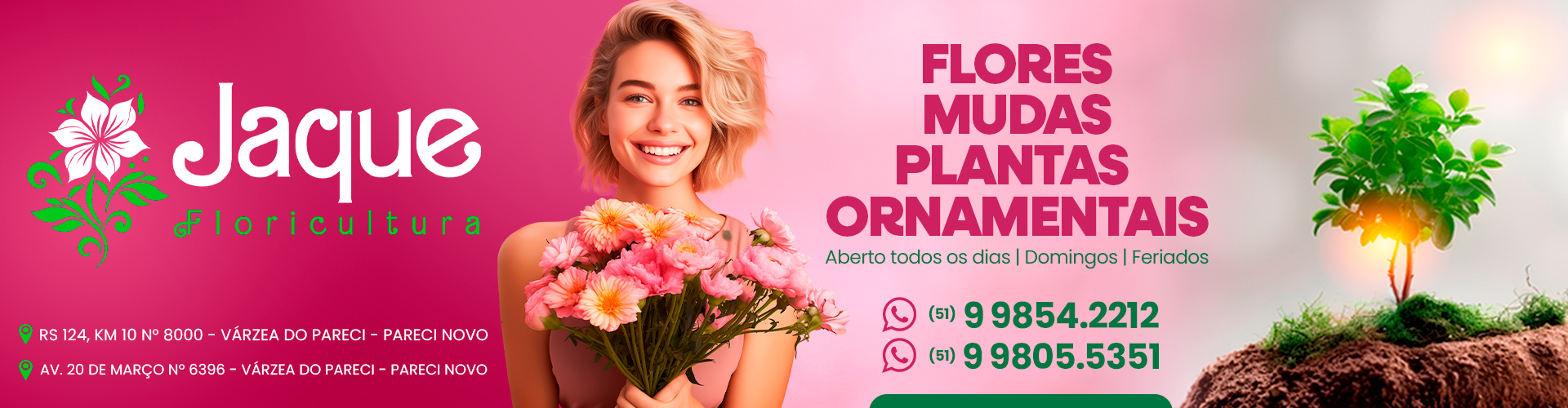 Jaque Floricultura. Aqui você encontra uma linda variedade de flores, mudas e plantas ornamentais para todos os gostos. Aberto todos os dias, incluindo domingos e feriados. Estamos prontos para ajudar você a escolher a planta perfeita!